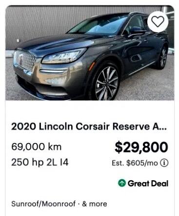 Vehicle Inquiry for 2020 Lincoln Corsair Reserve AWD