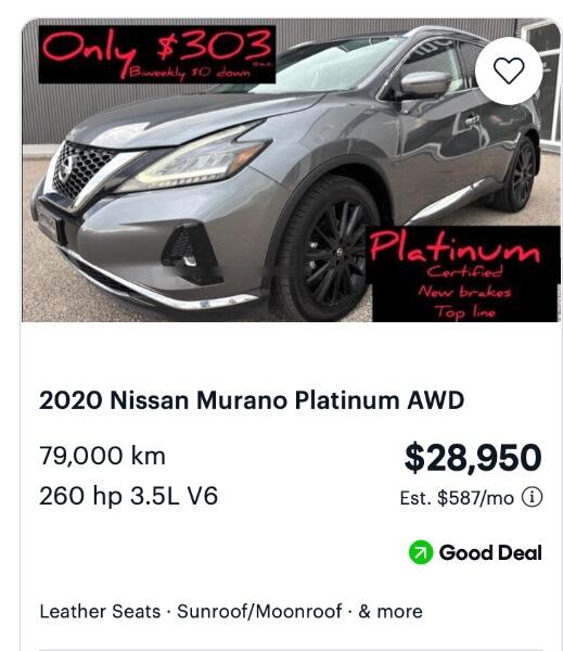 Vehicle Inquiry for 2020 Nissan Murano Platinum AWD